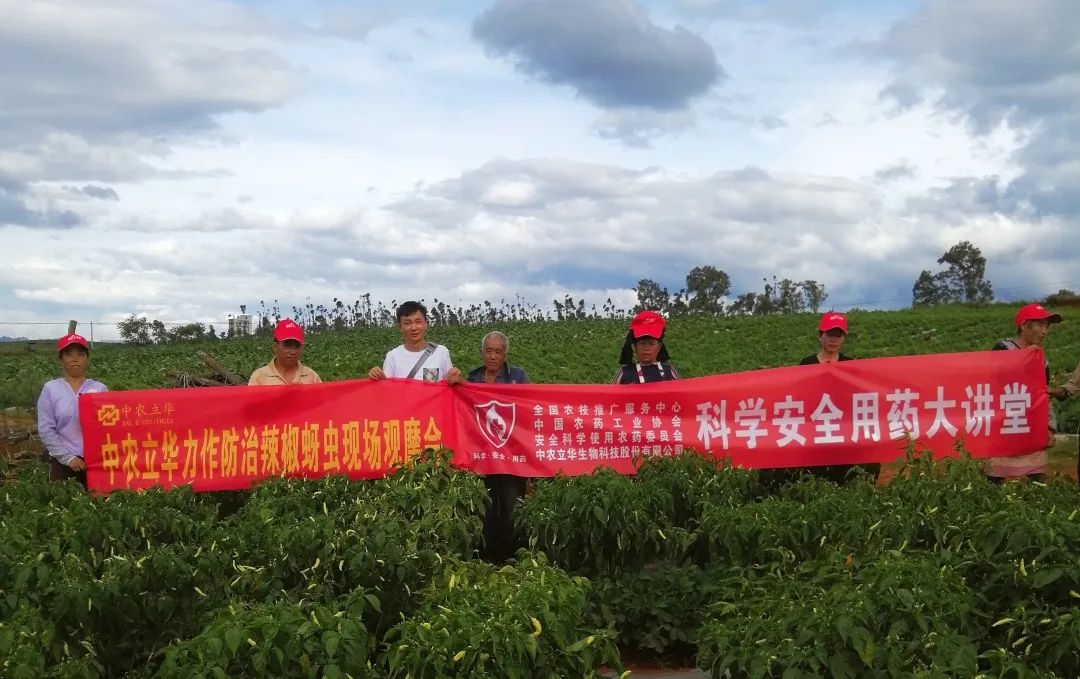 在云南省文山市,当地的小米辣正在遭受蚜虫威胁,虫口基数大,普通药剂已经无法进行有效防治。为解决种植户难题,中农立华成都公司积极在当地组织开展现场观摩会,亲自为种植户演示力作®施药方法。仅3天时间,就帮助农户消灭超过90%的蚜虫,同时为种植户提供后续科学种植管理建议,为种植户的增产增收保驾护航。