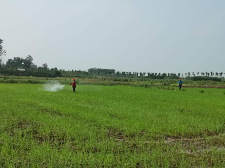近日,中农国昌技术人员在安徽滁州市深入田间地头,指导农户抓好水稻后期田间管理。