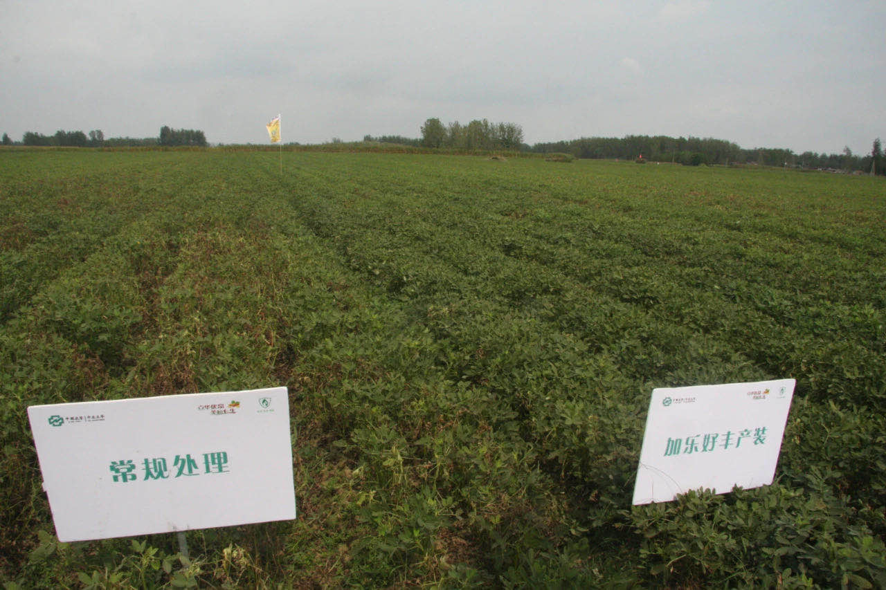 “我家里种了10来亩花生,一直疏于管理,只是偶尔除除草很少打药,亩产一直维持在500斤上下,今年花生的根腐病特别严重,估计对产量影响很大。这块用加乐好丰产装的花生地长势比我家的好很多,估计每亩能比我家的多收100来斤。”村民刘大哥说,别小看了这100来斤,今年花生的地头收购价大概是3元/斤,这么算下来每亩地能多收300元,10亩地就是3000块钱。明年说啥他也要用上这加乐好丰产装。