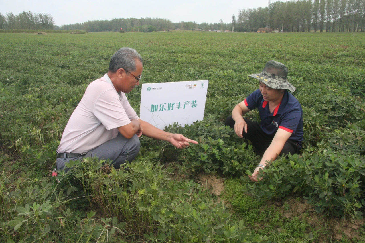 当地经销商王大哥说,加乐好丰产装不仅可以防治花生死棵,促进根系生长,促进花芽分化,促开花、花量大、下针多、下针早,还能防治花生叶斑病,提高结实率和抗逆性,减少落叶防早衰,促进籽粒饱满,进而提高花生的质量和产量。