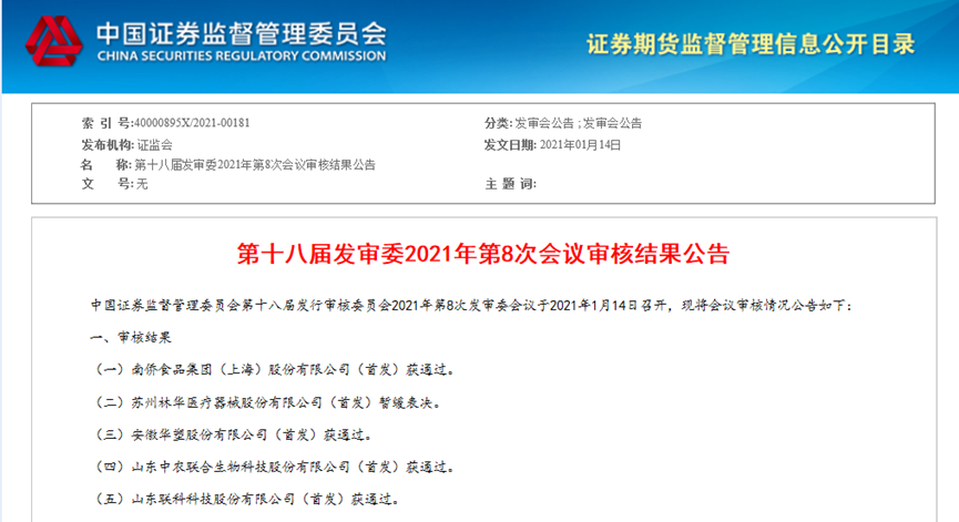 1月14日,中农公司旗下山东中农联合生物科技股份有限公司(以下简称中农联合)通过中国证监会第十八届发行审核委员会2021年第8次发审委会议审核。这是中国供销集团贯彻落实“七代会”精神和总社主要领导1月6日在中国供销集团调研时的讲话精神,实施“上市公司倍增计划”,加快实现中国供销集团高质量发展的具体举措。