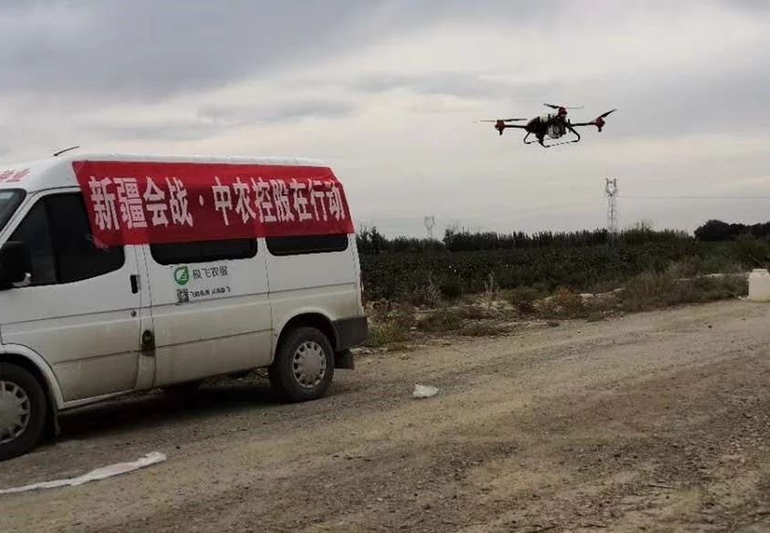 近年来,“中国农资”飞防服务队一直为新疆棉田提供无人机农业植保服务。为保证棉花在收获前均匀饱满地绽放,同时让棉叶充分脱水掉落而不影响棉花收割,无人机为当地棉花喷洒棉花脱叶剂,解放劳动力,降低生产成本,帮助棉农增产增收。