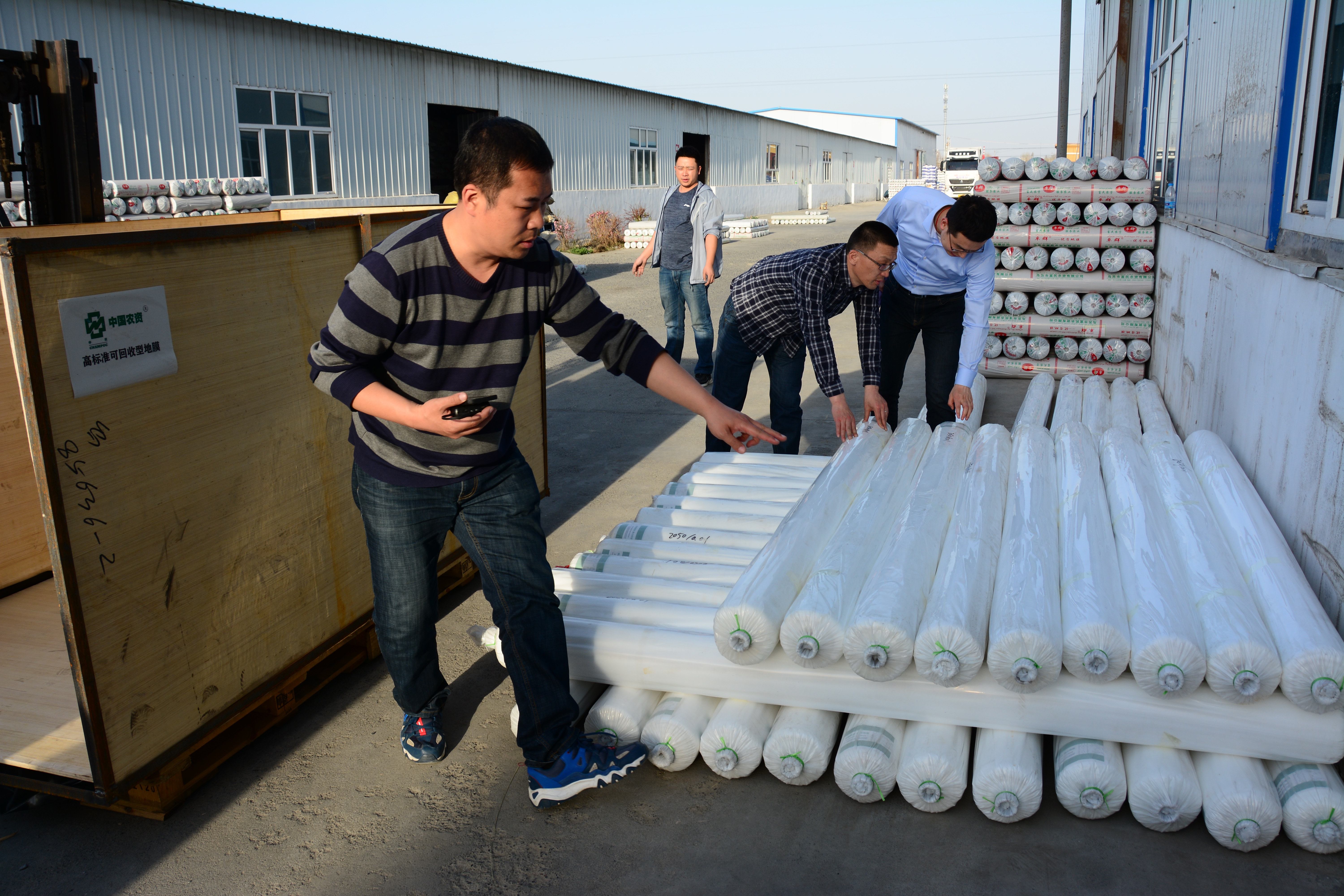 该基地位于新疆乌苏市中国农资现代农业服务中心的棉花种植基地内,试验铺膜面积约100亩。在整个地膜铺设过程中,中农通用、农服中心、博禄工作人员与农民一同起早贪黑,进行了地膜铺设工作,保证地膜按照预定要求完成铺设。中农通用现场人员在铺设完毕的地块上,按照各个对比组,对铺设的试验地膜做了标记,以方便后续试验数据采集、检测、收集、对比,保证最终试验结果的科学准确性。