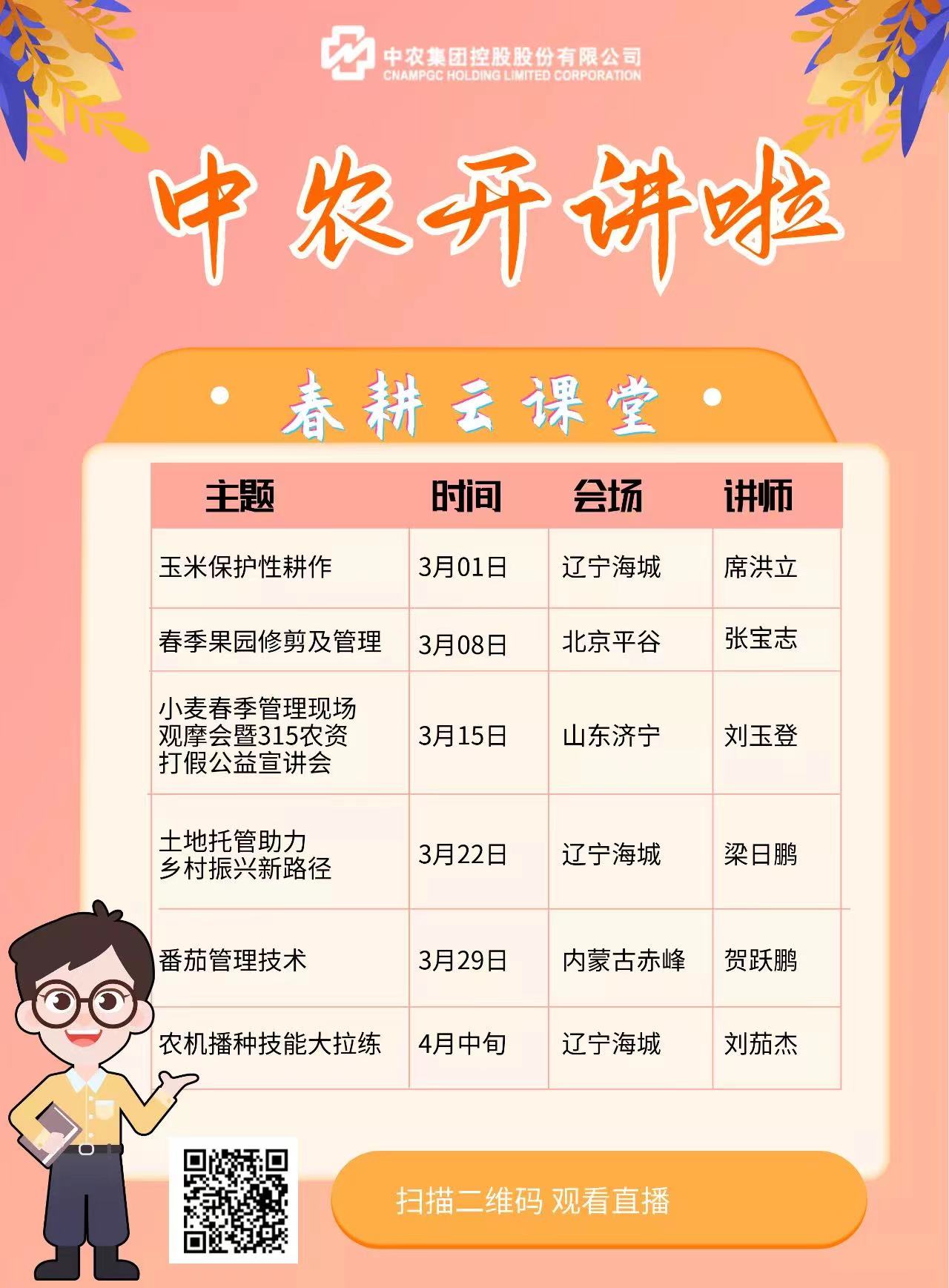 为助力夏粮丰收,帮助更多农户掌握专业实用的农业生产技术,春耕期间,中农集团线上品牌栏目《中农开讲啦》《立华说农技》已经开展了30余场直播,观看人数超过50万人次。
