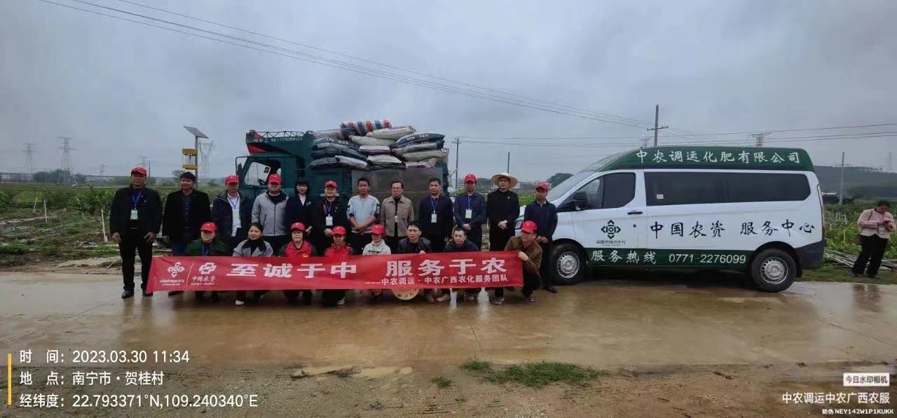 中农调运联合广西横州市供销社校椅镇横塘村基层社共同开展春耕保供暨送肥下乡活动,吸引了500余名横塘村村民及周边村庄村民积极参与。