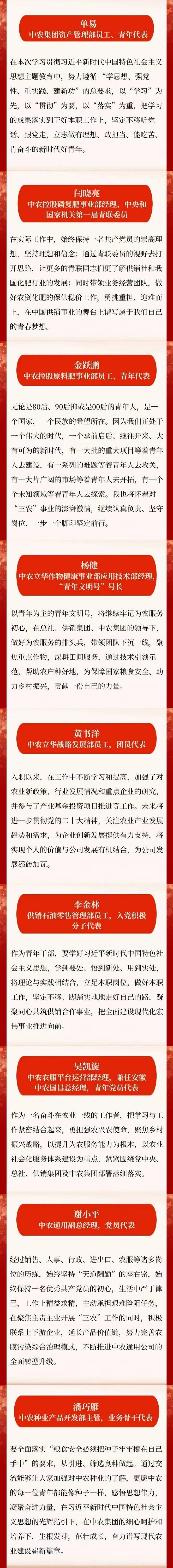 5月4日,作为深入开展学习贯彻习近平新时代中国特色社会主义思想主题教育的系列活动之一,中农集团举办了“中农青年”座谈会,与会青年代表们畅谈青春理想、汇聚青年力量,进一步践行、传承和弘扬“五四”精神,激发广大青年的责任感和使命感,为中农集团改革发展贡献青春力量。中农集团党委书记、董事长郝彦领出席会议并讲话。中农集团党委专职副书记冯建芳主持会议。