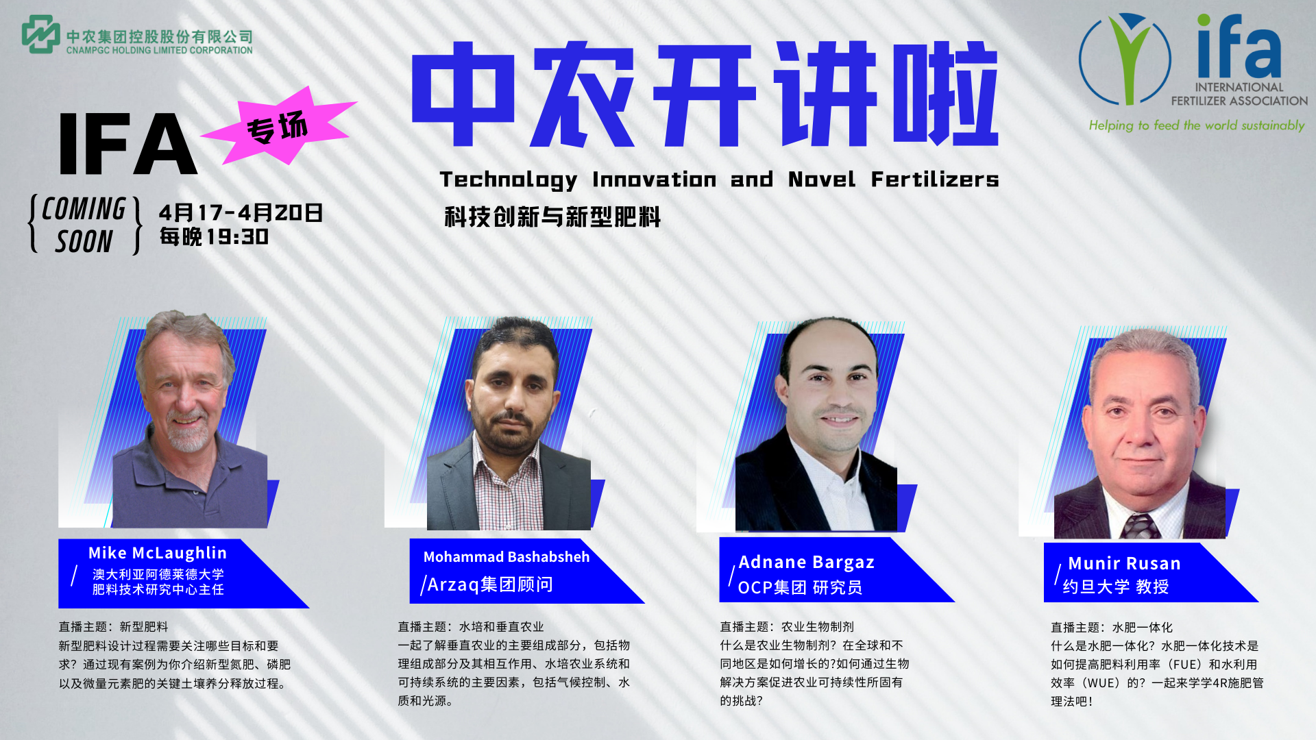今年以来,在线上开展了《中农开讲啦》之春节档、早春拉练、新疆棉花专场、IFA专场、主粮作物专场等直播近30场,邀请来自IFA、广东农科院、山东农科院、西南大学等机构的国内外行业专家带来农业生产使用技术等指导,直播观看总人数近180万人次,其中IFA专场观看人数近100万人次。