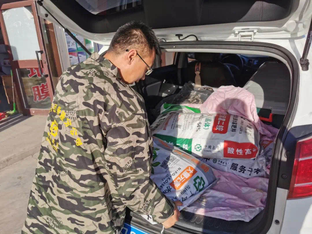 中农控股新疆分公司销售人员春耕期间始终奔波在一线,为客户送肥料、送技术、送服务,助力新疆春耕生产。