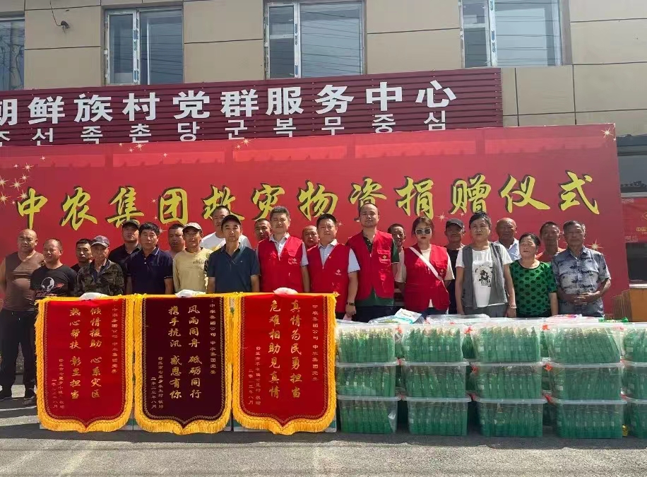 今年7月,受台风影响,河北、吉林等地出现强降雨天气,多地出现内涝,影响了当地的农业生产。中农控股农业服务事业部第一时间组织张森、梁世博等农服人员深入灾区,调查农田受灾情况,向受灾严重的地区捐赠肥料产品80余吨,助力保障受灾地区的农资供应。