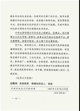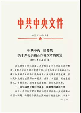 1995年2月27 日,中共中央、国务院作出《关于深化供销合作社改革的决定》(中发〔1995〕5号),指出: