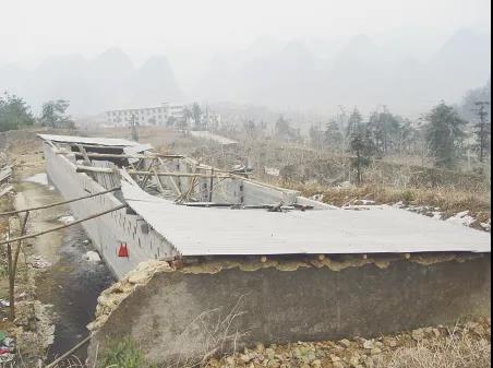 雪灾中被压塌的广西兴安县供销合作社房屋