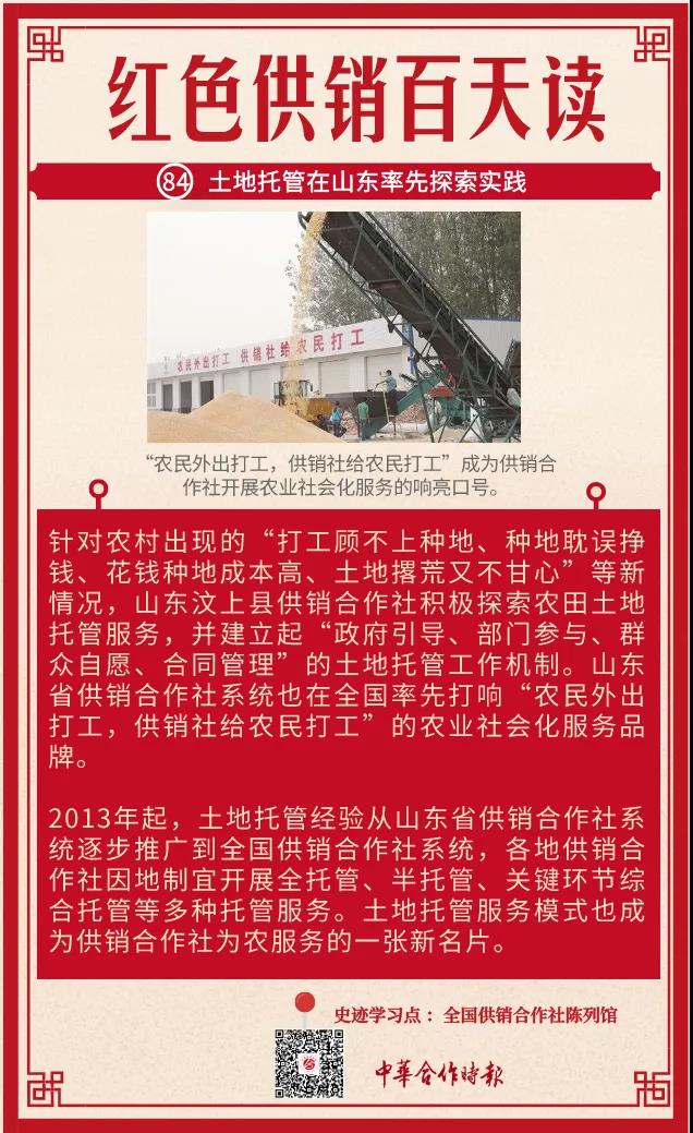 2013年4月18日,《人民日报》以《农民外出打工,供销社给农民打工》为题报道了汶上县开展土地托管服务的主要做法和成效。此后,“农民外出打工,供销社为农民打工”这句琅琅上口的口号从山东供销合作社系统传遍全国。