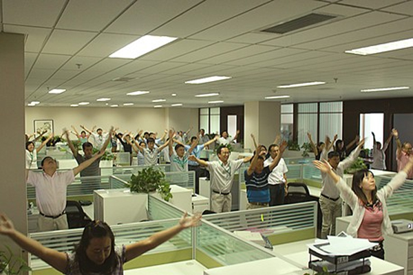 中农立华针对员工久坐办公室、伏案工作时间较长、活动时间少、运动量小、腰椎病和颈椎病发病率较高等情况,于9月起组织员工每日做工间操,以此来倡导健康工作。