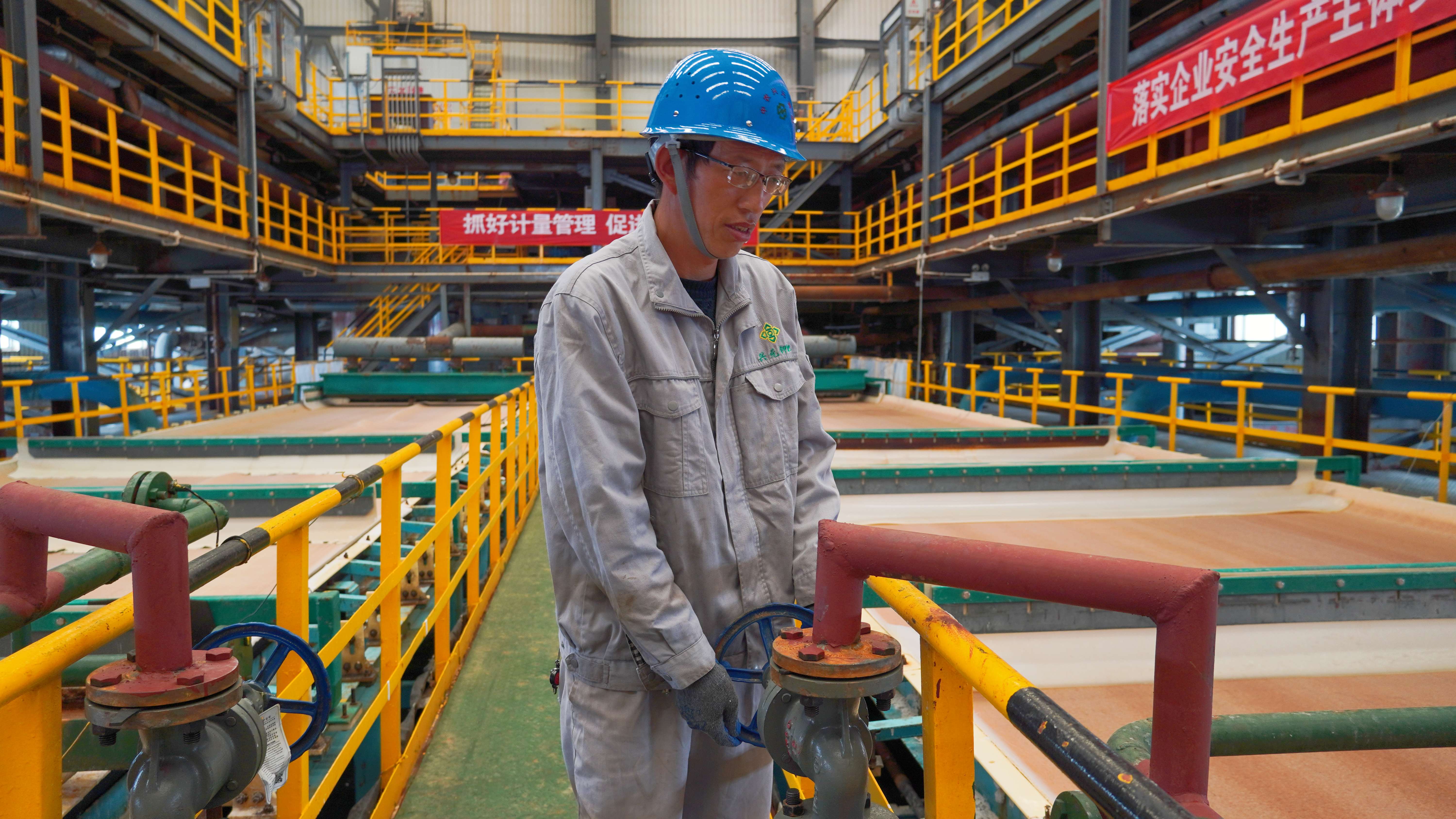 凭借着一股子不服输的劲儿,他带领技术团队不断摸索,通过增加喷淋装置,成功降低了硫酸钾镁肥氯离子含量,提升了产品品质;持续优化卤水和淡水配比,提高硫酸钾镁肥生产回收率5%—10%;2022年团队申请提交的《一种采用低品位地表矿生产钾肥的方法》等2项发明专利在生产中得到应用。